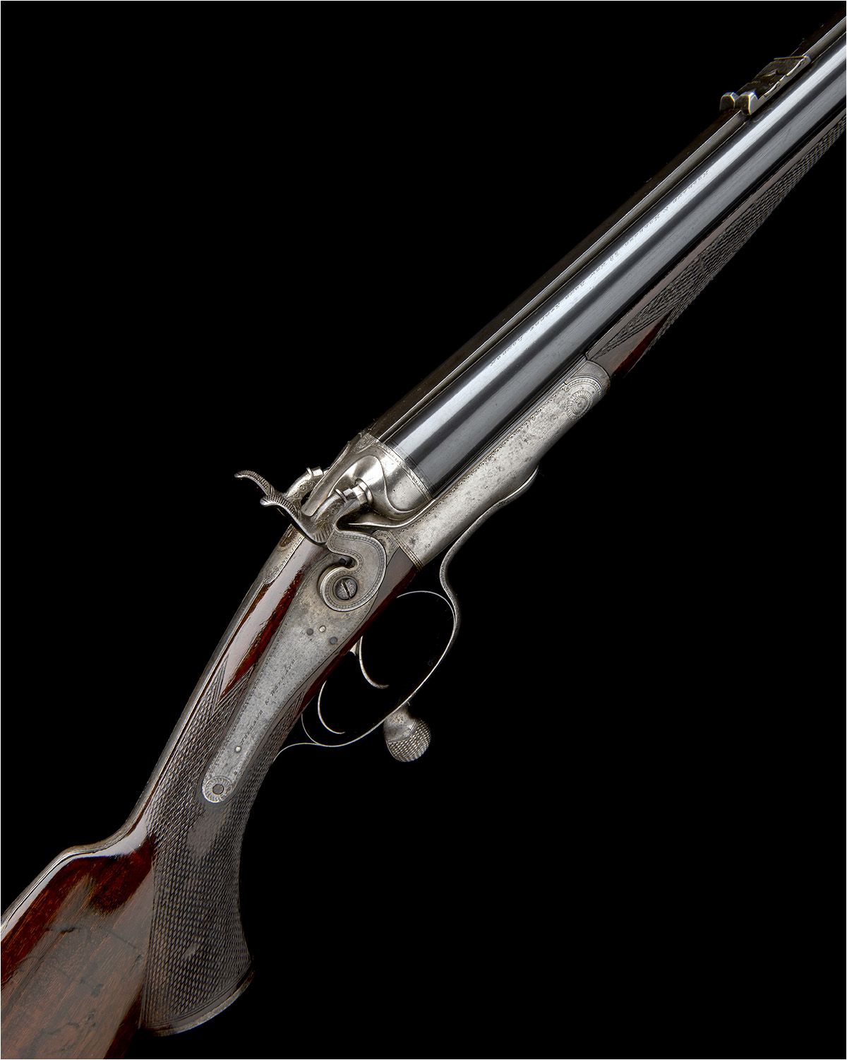 Provenance: The makers have kindly confirmed that the rifle was completed in 1864 for a Mr Watson as a '.500 Bore D Rifle', with 'back action locks, lever over guard, non rebounding locks, pistol hand cheekpiece, lever forend'