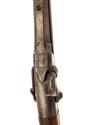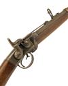 circa 1865, with drop-down two-stage 21 1/2in. barrel, dove-tailed blade fore-sight, folding leaf rear-sight, plain receiver (traces of colour) marked 'ADDRESS POULTNEY & TRIMBLE, BALTIMORE, USA' and 'SMITHS PATENT JUNE 23RD 1857' the breech marked vertically 'MANUFACTURED BY AM'N. M'CH'N. WKS. SPRINGFIELD. MASS.', saddle ring and bar to the left hand side, walnut straight hand butt-stock (repairs at head), iron heel-plate and walnut splinter fore-end with iron barrel-band, traces of finish only