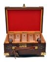 for approx. 250 cartridges, the interior lined with red baize, five leather lifters, four removable dividers, brass lock (key missing)
