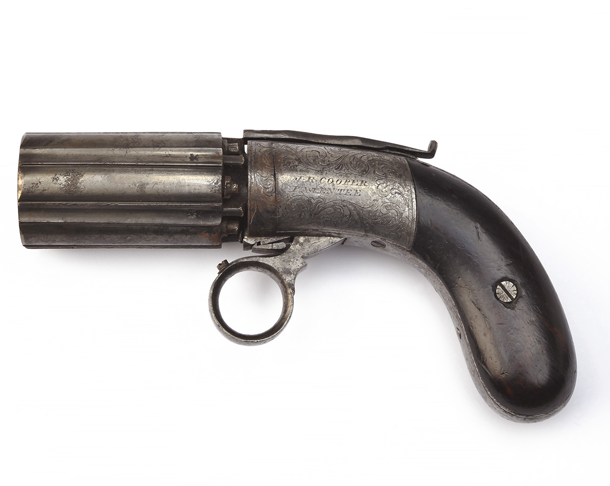 J.R. COOPER, BIRMINGHAM AN 80-BORE PERCUSSION SELF-COCKING PEPPERBOX REVOLVER, MODEL COOPERS PATENT, no visible serial number,