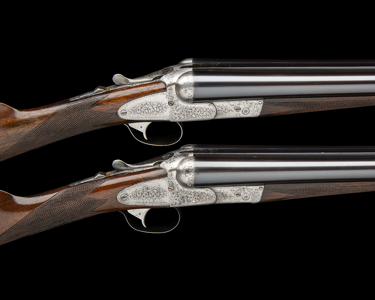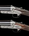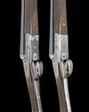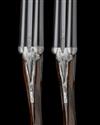 30in. nitro barrels, the ribs engraved '1' and '2', and 'COGSWELL & HARRISON LTD. THE AVANT TOUT. 141 NEW BOND ST. & 226. STRAND. LONDON.', 2 1/2in. chambers, bored approx. true cyl. and 1/4 choke (both), No.1 left wall at 18, treble-grip actions, automatic safeties with gold-inlaid 'SAFE' detail, the safety catches engraved '1' and '2', border and acanthus scroll engraving, the decorative sideplates engraved en suite, 14 1/4in. stocks including 3/4in. rubber recoil pads, weight 6lb. 8oz. (No.1) 6lb. 7oz. (No.2), in their makers brass-cornered oak and leather double guncase