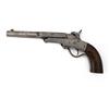 apparently professionally cut-down and altered from a Maynard's Patent civil war carbine, with octagonal to round 8 1/4in. tilt-down barrel, applied brass crescent fore-sight, blanked off rear-sight dove-tail, the breech marked 'W.D.W.' above an anchor device (possibly spurious), the left side of breech marked with inspectors initials 'G.W.S.', open iron frame marked on the left 'EDWARD MAYNARD PATENTEE' above 1851 & 1859 patent dates, the right side marked 'MANUFACTURED BY MASS. ARMS. Co. CHICOPEE FALLS', moulded top to standing breech with off-set nipple, central hammer with off-set head, blanked off holes for a saddle-bar, walnut pistol-grip, iron back and front straps and shaped underlever laying flush with front-strap, no provision for fore-end, in the white finish with some mild staining