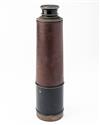 A BRASS AND LEATHER FOUR-DRAW STALKING TELESCOPE,