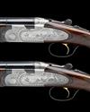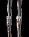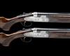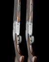 29 1/2in. nitro barrels with 6mm ventilated matt top-ribs, gold-inlaid '1' and '2' at the breech ends, 2 3/4in. chambers, bored approx. imp. cyl. and 1/4 choke, hold-open toplevers gold-inlaid '1' and '2', automatic safeties with integral barrel selector switches, gold-washed triggers, floral and acanthus scroll engraving, the decorative sideplates with game scenes of pheasant and woodcock, the triggerplates with the model designation and signed 'Bottega C. Giovanelli', bright finish, 15 1/4in. figured pistolgrip stocks including 1in. leather covered recoil pads, weight 6lb. 4oz. and 6lb. 6oz.