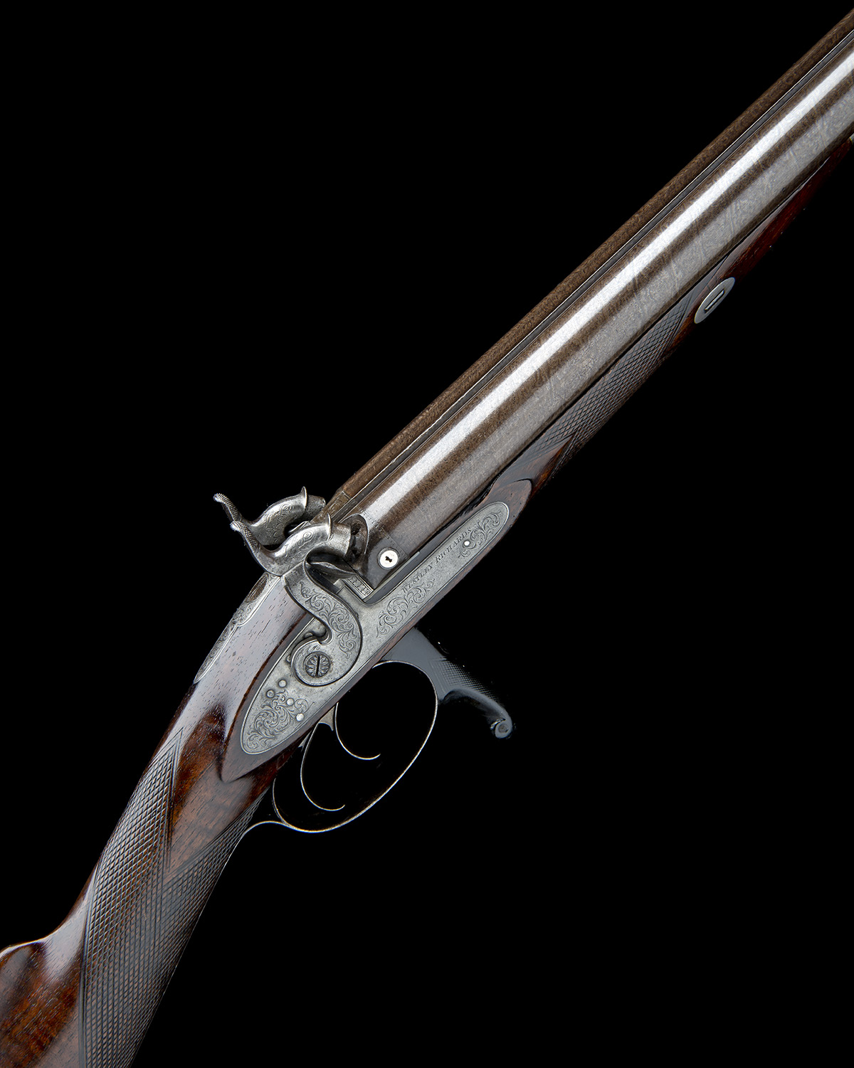 A 14-BORE PERCUSSION DOUBLE-BARRELLED SPORTING-GUN , serial no. 7735,