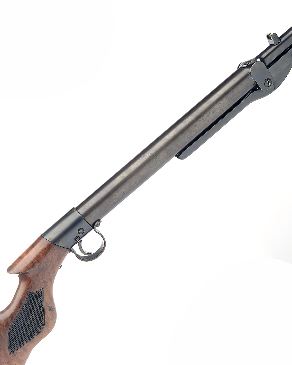 A .177 UNDER-LEVER AIR-RIFLE SIGNED BSA, MODEL 'STANDARD', serial no. S11548, for 1921, with 19 1/4in. sighted barrel, tap loading breech, plain air-chamber (no etching visible), saw-handled walnut butt and push-button under-lever