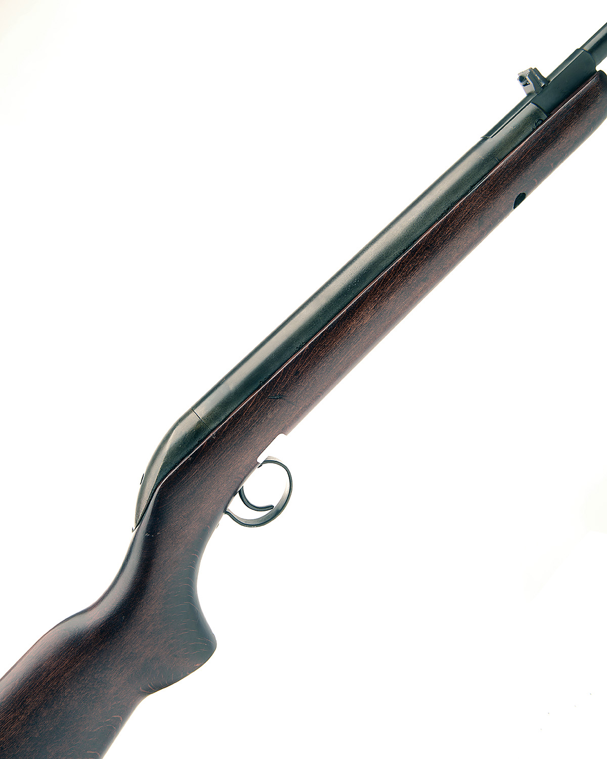 with sighted 18in. barrel, plain air-chamber (no etching visible) and beech half-stock, refinished