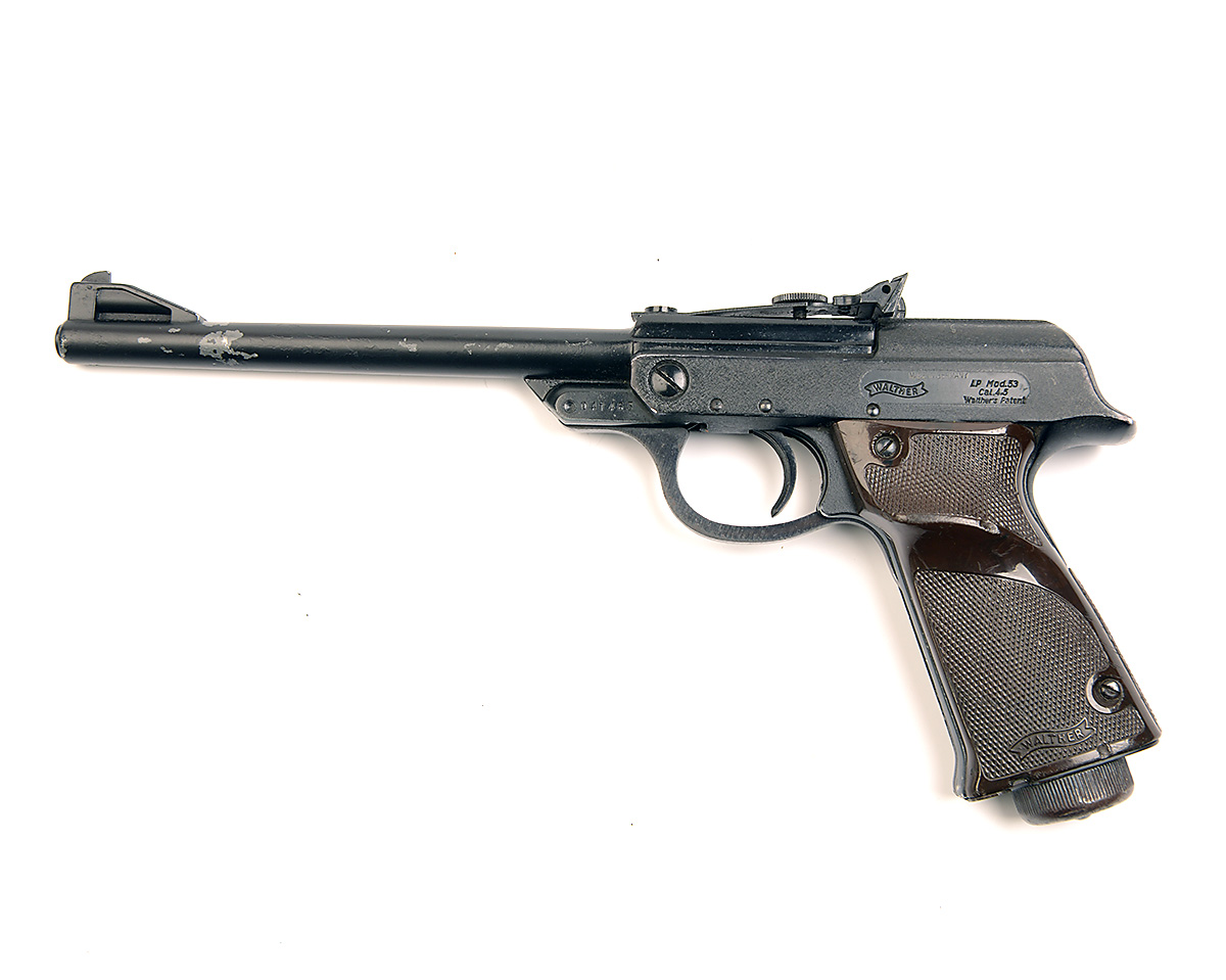 A .177 BARREL-COCKING AIR-PISTOL SIGNED WALTHER, MODEL 'LP53', serial no. 041465,