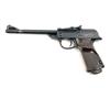 with 9 1/2in. sighted barrel, black crackle finish receiver, hinged frame and brown chequered bakelite grips