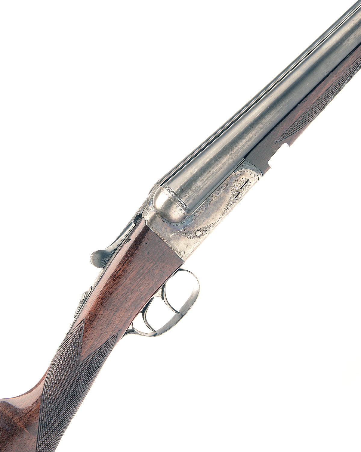 AYA 12-BORE 'MODEL NO.4' BOXLOCK EJECTOR, serial no. 153688, 26in. nitro barrels, 2 3/4in. chambers, bored approx. 1/4 and 3/4 choke, removable striker discs, automatic safety with gold-inlaid 'S' detail, border and partial scroll engraving, retaining soe original colour-hardening and finish, 14 3/4in. stock, weight 6lb. 7oz.