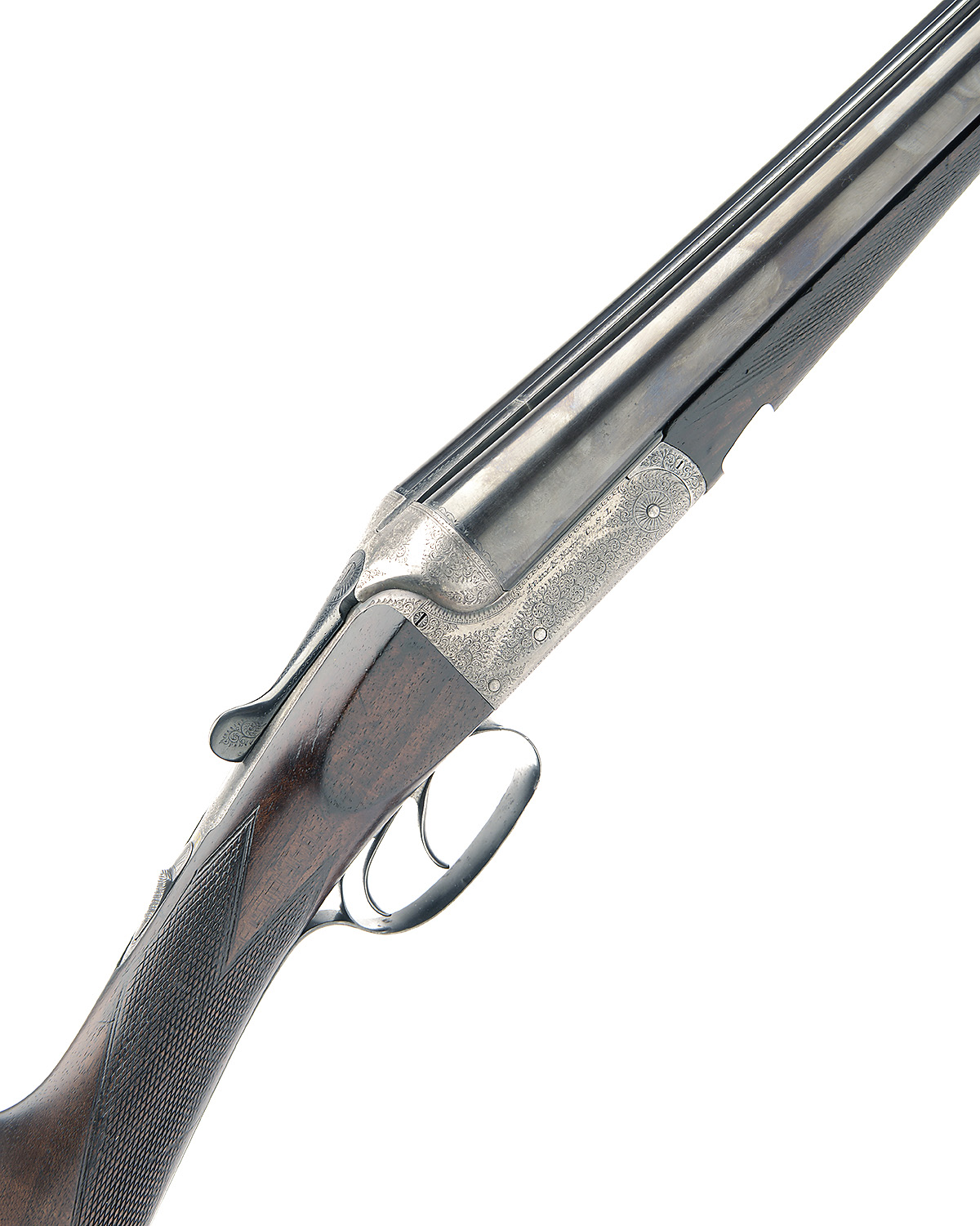 ARMY & NAVY C.S.L. 12-BORE BOXLOCK EJECTOR, serial no. 17575, 28in. replacement nitro barrels, the rib engraved 'BARRELS BY W. METCALFE. RICHMOND. YORKS.', 2 1/2in. chambers, bored approx. 1/4 and 3/4 choke, treble-grip action, automatic safety with gold-inlaid 'SAFE' detail, intercepting sears, removable striker discs, border and acanthus scroll engraving, 14 3/4in. stock including 3/4in. rubber recoil pad, weight 6lb. 13oz.