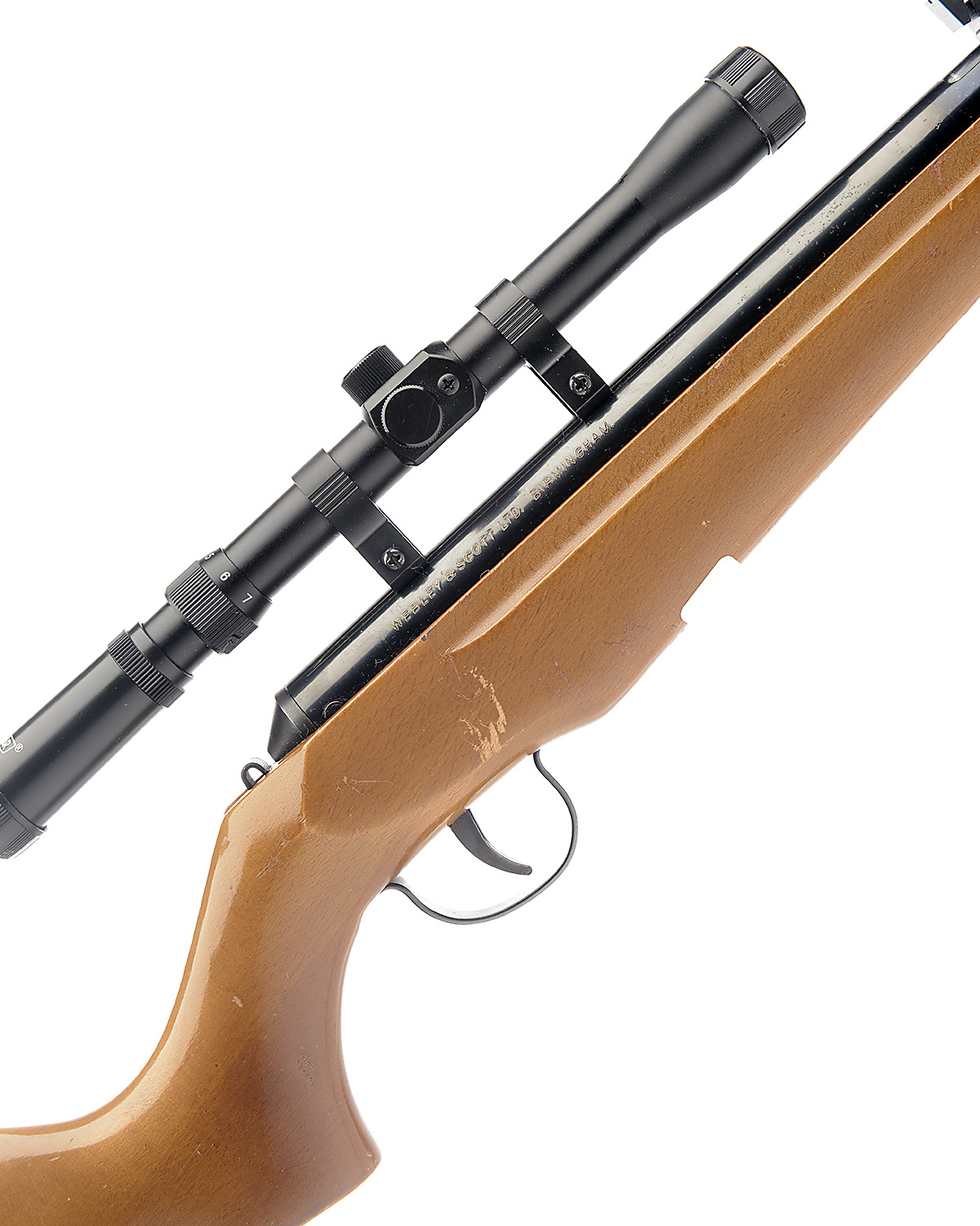 with interchangeable 17in. barrels, blued air-chamber with rear safe and angular beech half-stock, the spare barrel in its makers card carton and all contained in a cordura gun-slip, generally collector's condition and fitted with a Kandar 3-7x20 telescopic sight