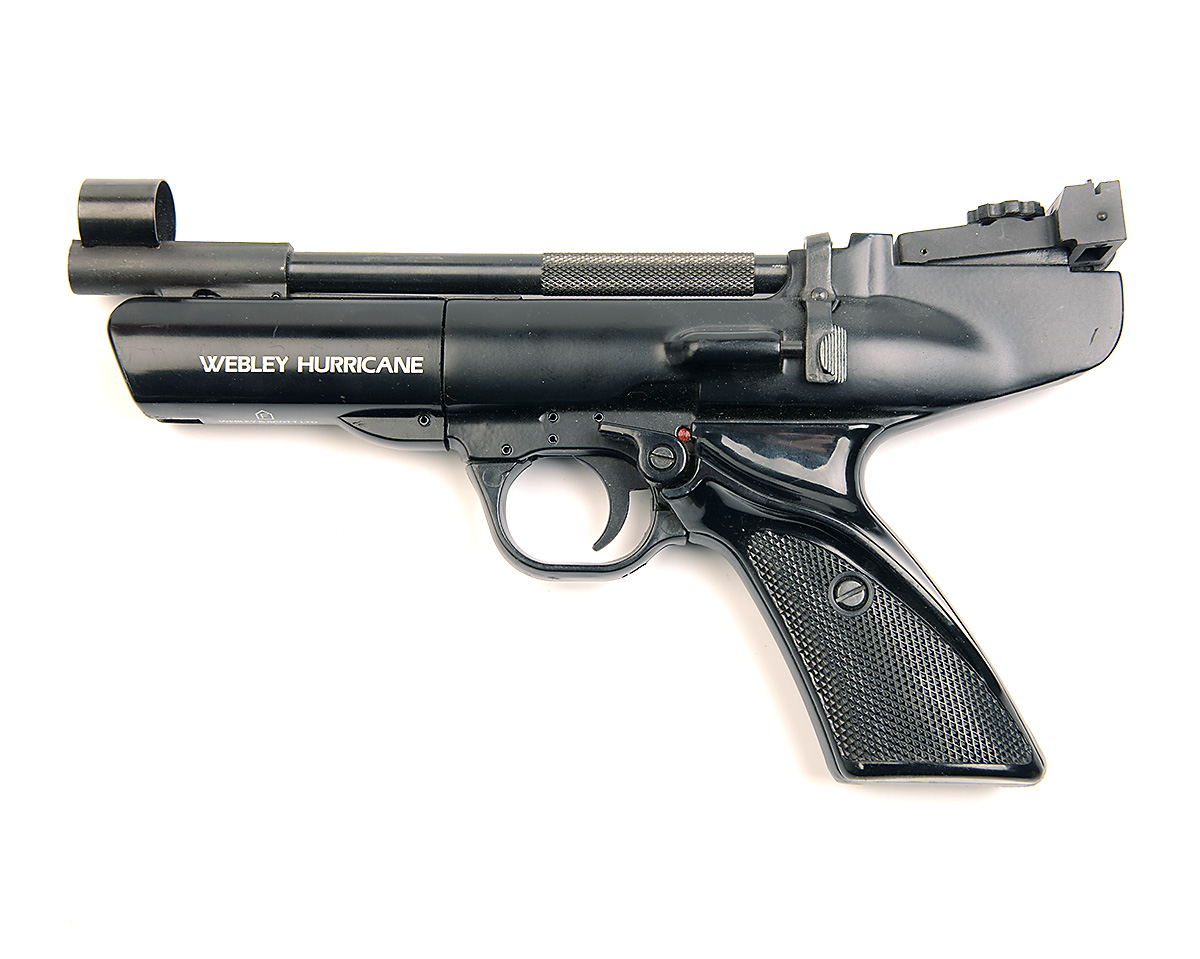 A .22 BARREL-COCKING AIR-PISTOL SIGNED WEBLEY & SCOTT, MODEL HURRICANE, no visible serial number,