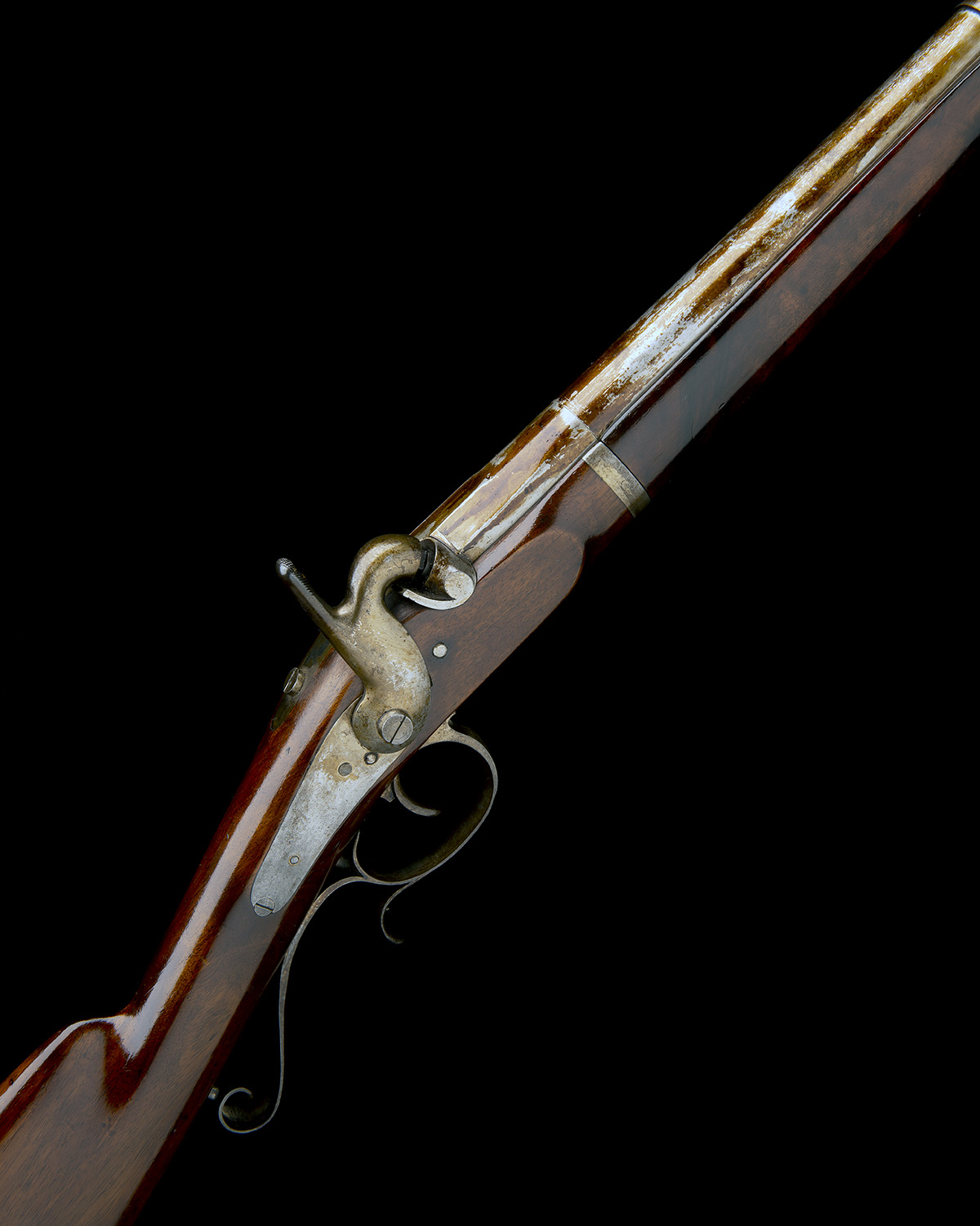 A MOST UNUSUAL .675 PERCUSSION BREECH-LOADING SHORT MUSKET MARKED 'A.G', no visible serial number,