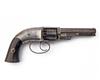 one of around 250 produced circa late 1850's, with 4 1/2in. octagonal barrel, the top-strap marked 'PETTENGILL'S PATENT 1856', double articulated under-barrel split loading-lever, scroll engraved solid hammerless frame, the underside marked 'RAYMOND & ROBITAILLE PATENTED 1858', plain cylinder, smooth flared walnut grips and guarded trigger, traces only of finish