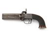 A 50-BORE PERCUSSION SIDE-HAMMER FOUR-SHOT TURN-OVER PISTOL, UNSIGNED, no visible serial number,