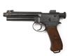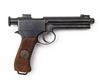 circa 1909, with 5 1/2in. concealed barrel, blued receiver with cocking piece to rear, blued frame with internal magazine, semi double-action trigger and grooved walnut grips, Austrian cavalry issue, much finish remaining