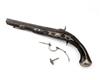 London hallmarks rubbed but almost certainly 1755 with later conversion to percussion by drum and nipple, with slightly swamped 9in. barrel (pitted), carved steeple and tear-drop rib at breech, iron top-tang, curved and radiused lock signed 'BARBAR' (faint, shallow pitted), slab-sided engraved hammer, walnut full-stock (cracked through at wrist and repaired, small losses), silver furniture including long-eared grotesque mask butt-cap, trigger-guard tang and bow, pierced floral ribbon sideplate, rococo escutcheon, oval take-down wedge escutcheons and ramrod pipes, missing end of ramrod, some furniture parts loose but present