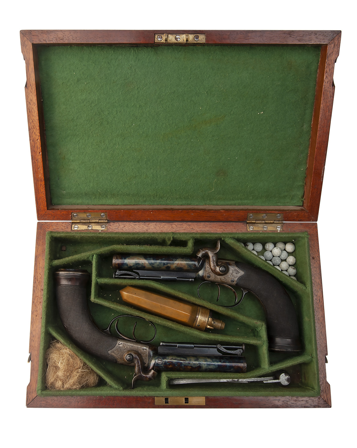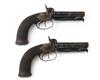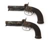 A CASED PAIR OF 50-BORE PERCUSSION DOUBLE-BARRELLED TRAVELLING-PISTOLS, no visible serial numbers,