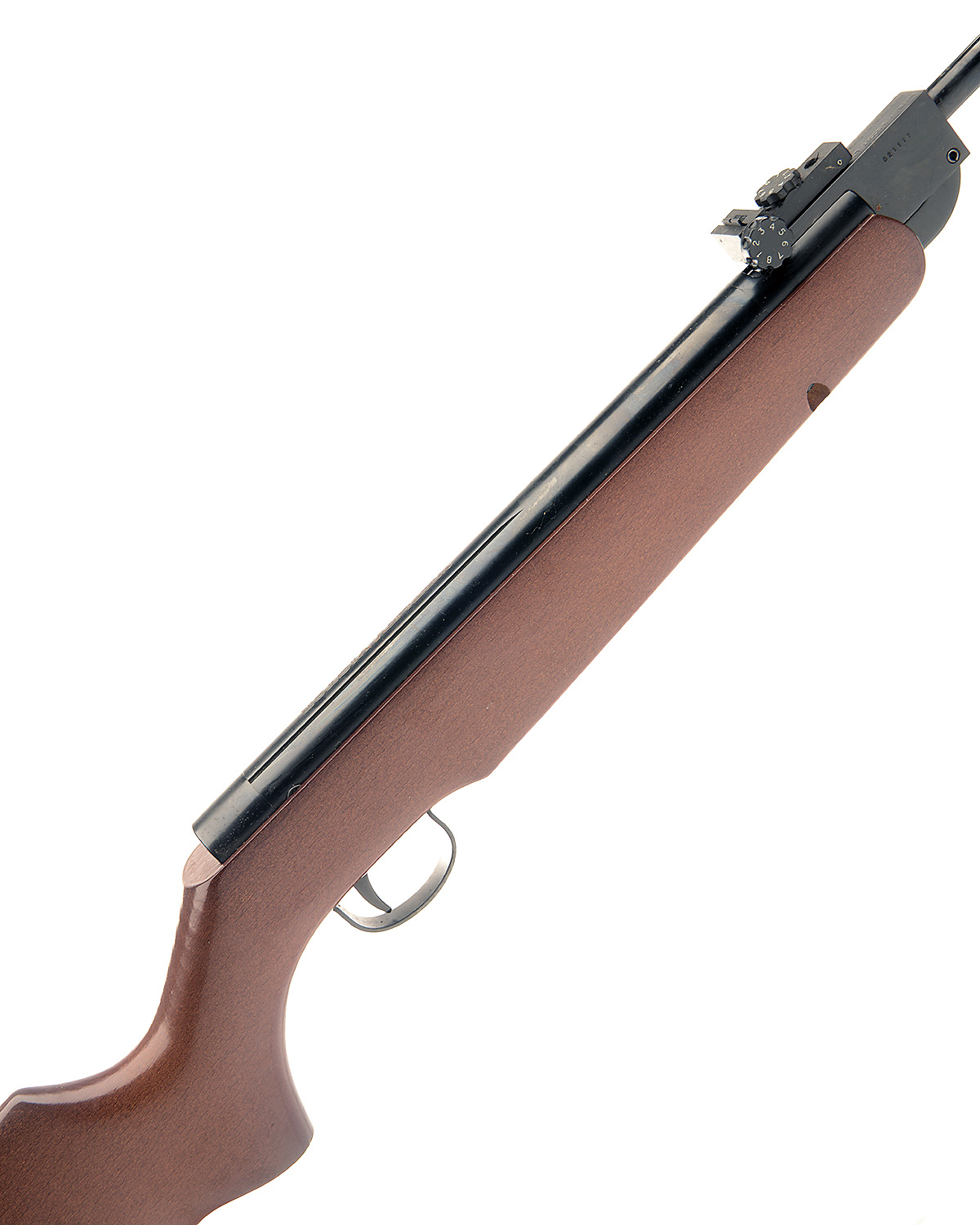 A BOXED .22 BREAK-BARREL AIR-RIFLE SIGNED WEBLEY & SCOTT, MODEL 'VICTOR', serial no. 021111, with 16in. sighted barrel, blued air-chamber and plain beech stock, appearing little used in its makers card and polystyrene carton (tatty), the gun appearing little used and in collector's condition