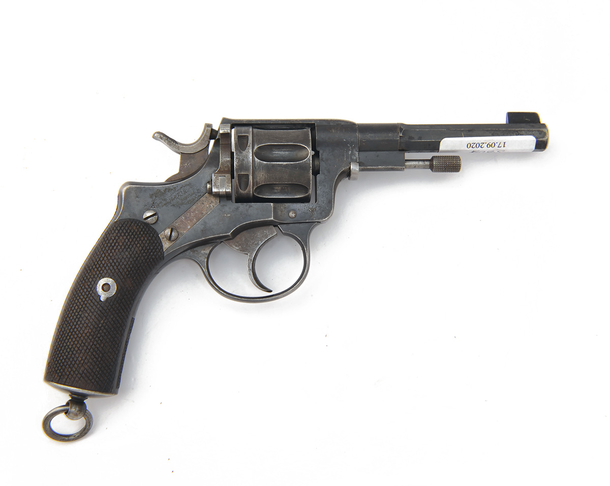 A 7.5mm (SWEDISH ORD.) SIX-SHOT SERVICE-REVOLVER SIGNED HUSQVARNA, MODEL 'M1887', serial no. 1097, circa 1895 with two-stage 4 1/2in. barrel, solid frame, blind fluted cylinder and chequered walnut grips, strong traces of original finish