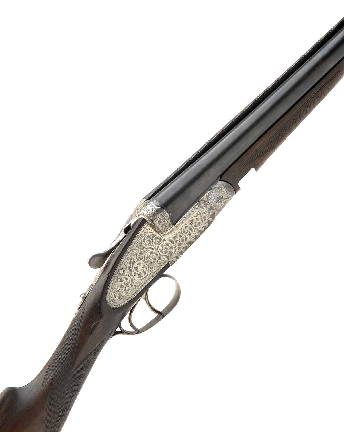 EDGAR BROTHERS 12-BORE HAND-DETACHABLE SIDELOCK NON-EJECTOR, serial no. 32181, 27 3/4in. nitro barrels, the tubes engraved 'EDGAR BROTHERS. 22 LILLEY ROAD, LIVERPOOL, ENGLAND. and 'MADE IN SPAIN', 2 3/4in. chambers, bored approx. 1/4 and 3/4 choke, bolstered treble-grip action with hidden third bite, sideclips, toplever spring broken, automatic safety, hand detachable lockplates, cocking indicators, border and acanthus scroll engraving, brushed bright finish, 14 1/2in. stock including 7/8ni. ventilated rubber recoil pad