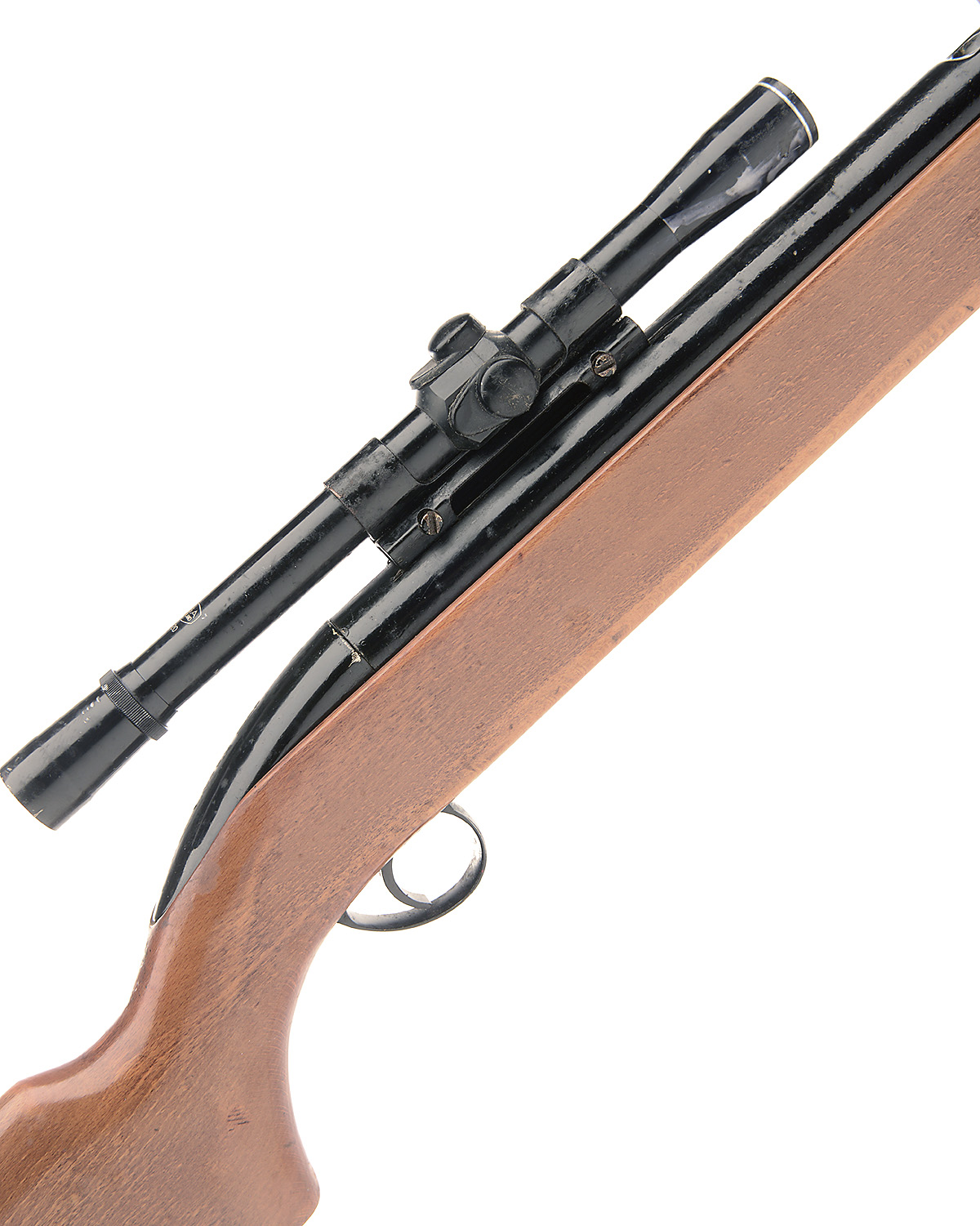 A .22 UNDER-LEVER AIR-RIFLE SIGNED BSA, MODEL 'AIRSPORTER', serial number obscured, with repainted 18in. barrel and air-chamber, pale beech stock, action stiff to operate and fitted with a BSA 4x20 telescopic sight