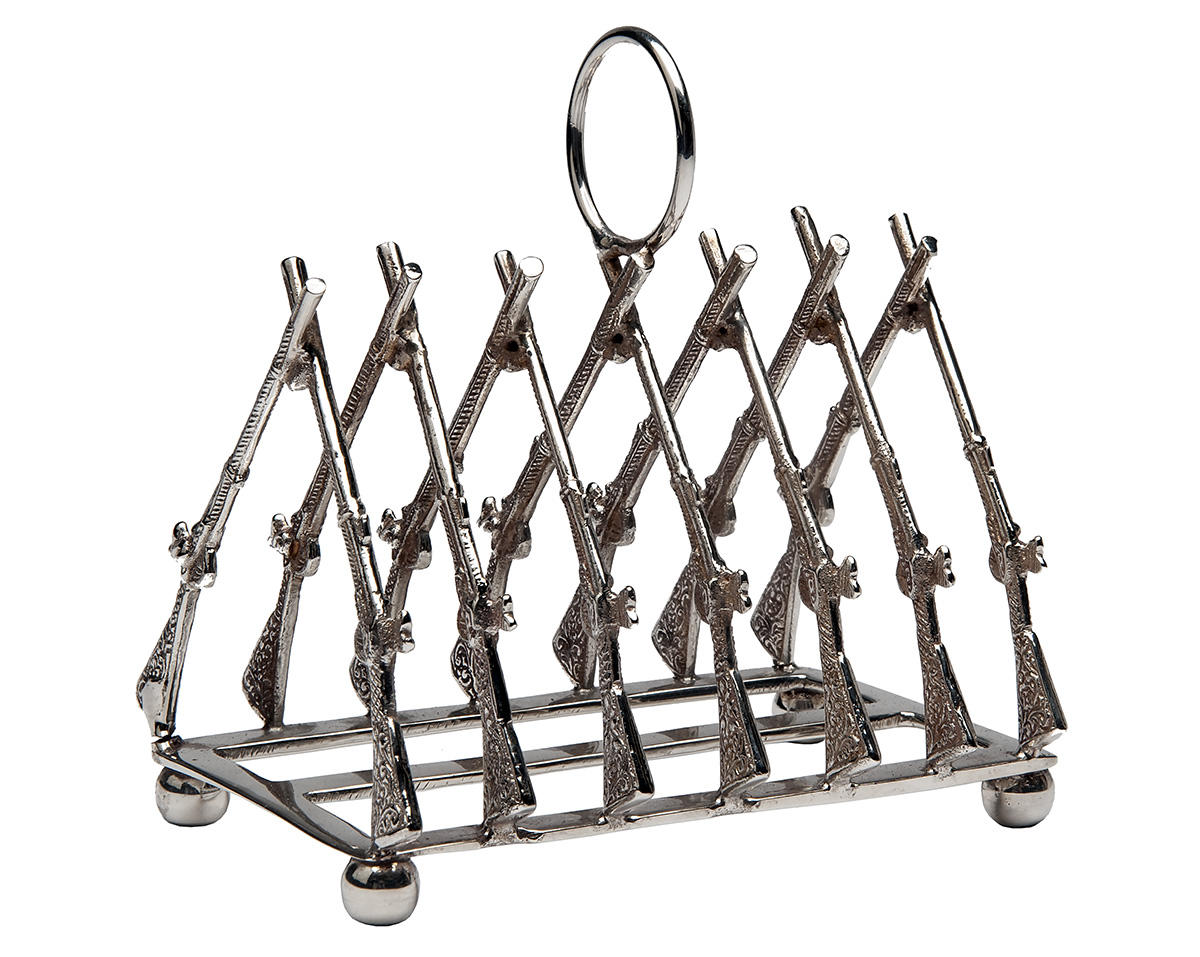 A TOAST RACK IN THE FORM OF CROSSED GUNS,