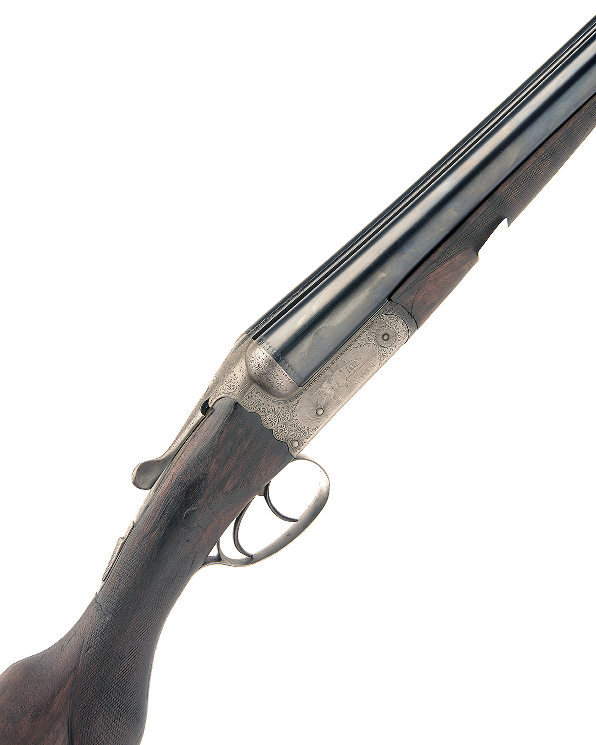 W. & J. DAVIS 12-BORE BOXLOCK NON-EJECTOR, serial no. 136530, 30in. nitro barrels (loose on action), rib engraved 'W. & J. DAVIS. BIRMINGHAM', 2 1/2in. chambers, bored approx. true cyl. and full choke, some pitting, scroll-back treble-grip action, automatic safety, acanthus scroll engraving with vignettes of a pointer and pheasant, 13 3/4in. semi-pistolgrip stock with crack at hand, the wood and metal stripped of finish