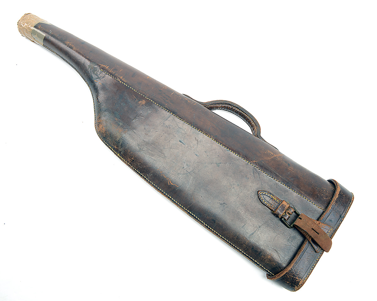 A LEATHER LEG-OF-MUTTON SINGLE GUNCASE ,