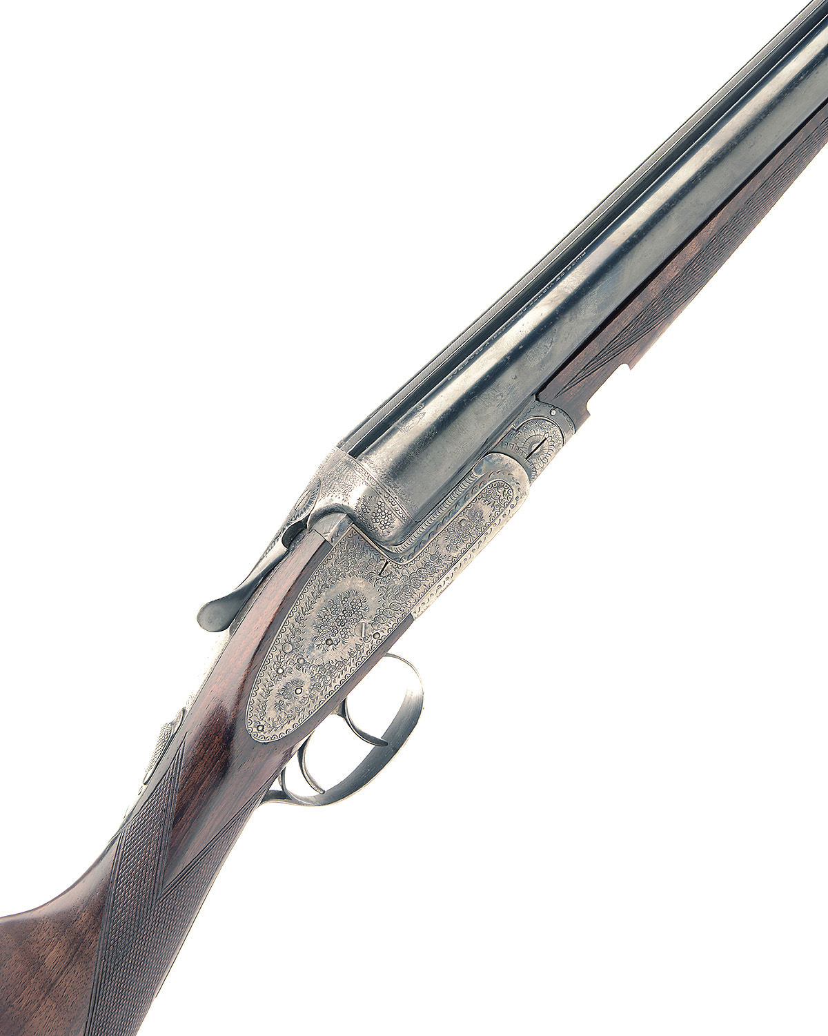 VICTOR ARAMBERRI 12-BORE SIDELOCK EJECTOR, serial no. 99595, 27 3/4in. nitro barrels, 2 3/4in. chambers, bored approx. 1/2 and full choke, bolstered treble-grip action with hidden third bite, automatic safety, cocking indicators, bouquet and scroll engraving, retaining traces of original colour-hardening and finish, 14in. stock including buttplate