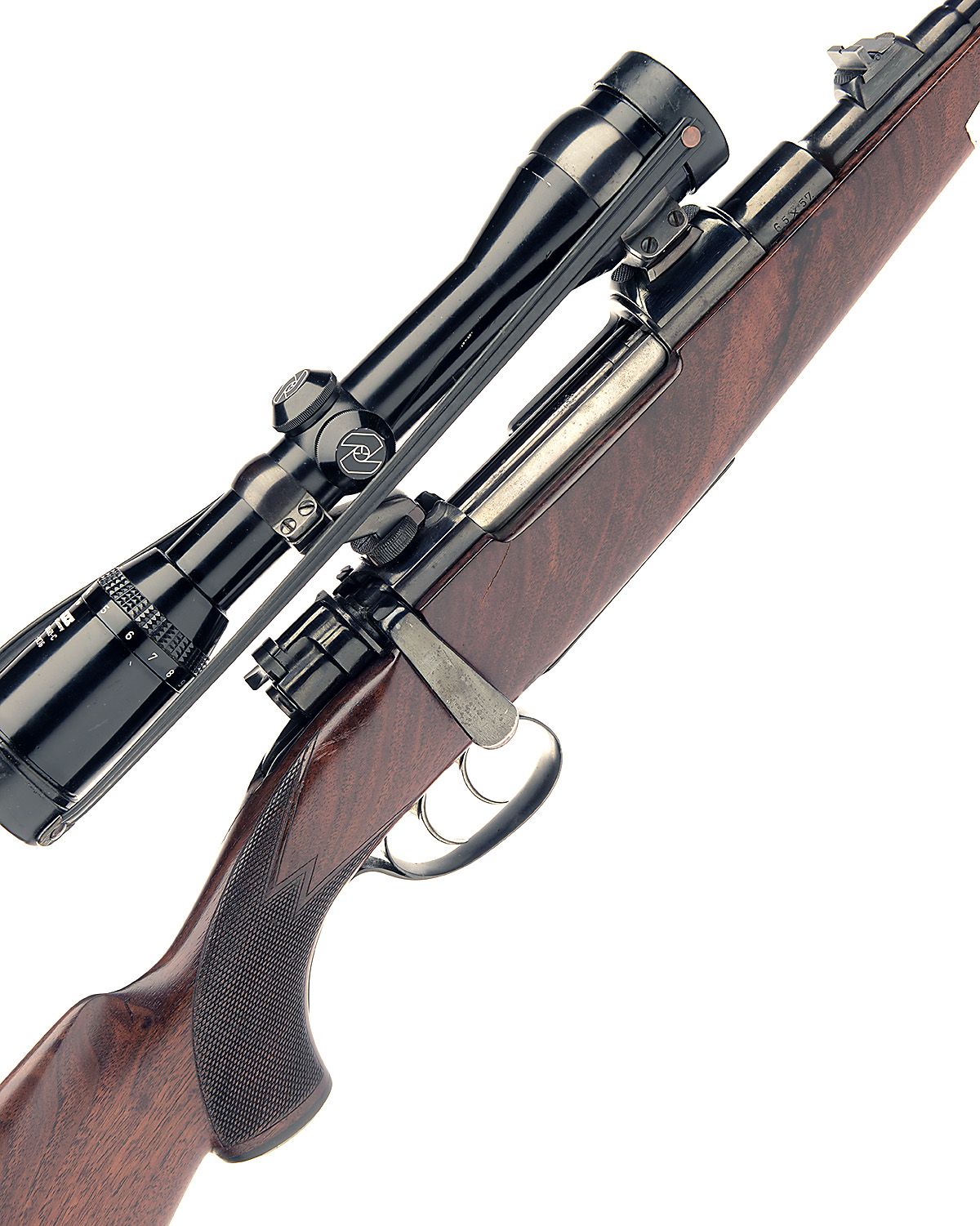 MAUSER 6.5x57mm 'MODEL 98' BOLT-MAGAZINE SPORTING RIFLE, serial no. 7804, Circa 1950. 22in. nitro barrel, ramp-mounted bead fore-sight, leaf rear-sight with 1 x folding, fitted with a Zeiss Diavari-C 3-9x36 telescopic sight serial no. 40808, with quick release mounts, manual flag safety, hinged floorplate, set triggers, 14 1/4in. well-figured pistolgrip stock with cheekpiece, sling swivels