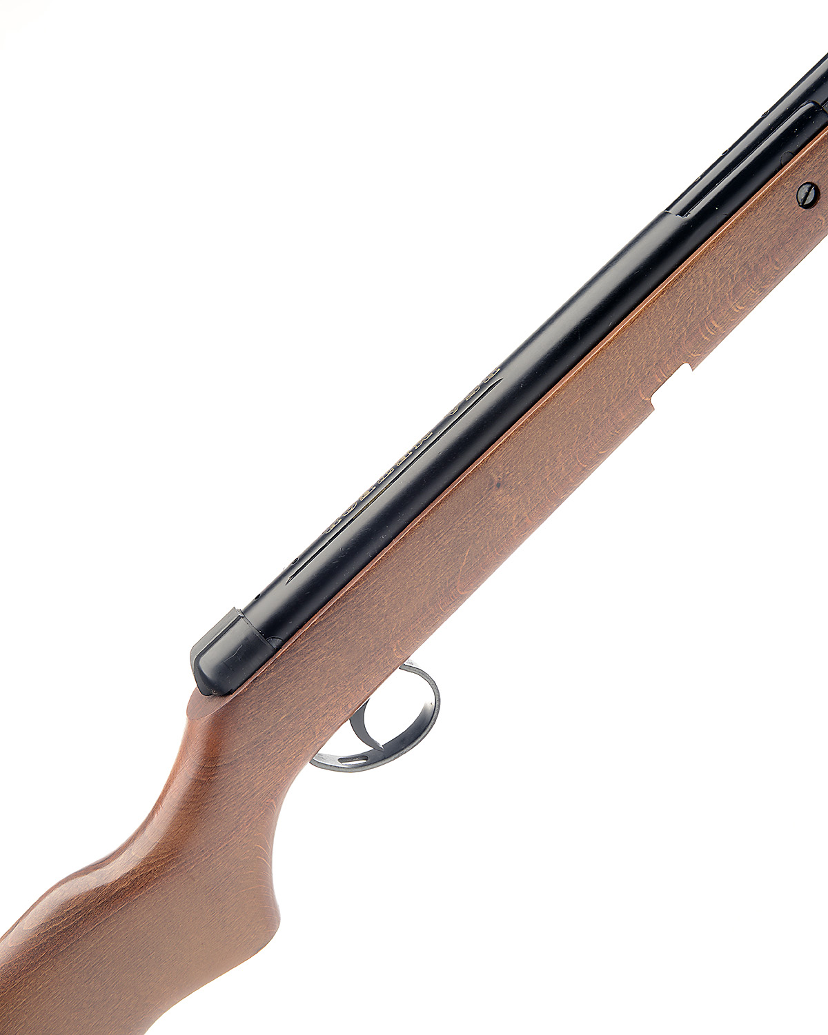 A .22 BREAK-BARREL AIR-RIFLE SIGNED BSA, MODEL 'METEOR', serial no. TH99075, with stove enamelled 18in. barrel (missing open sights), air-chamber railed for a telescopic sight and beech half-stock, much finish remaining