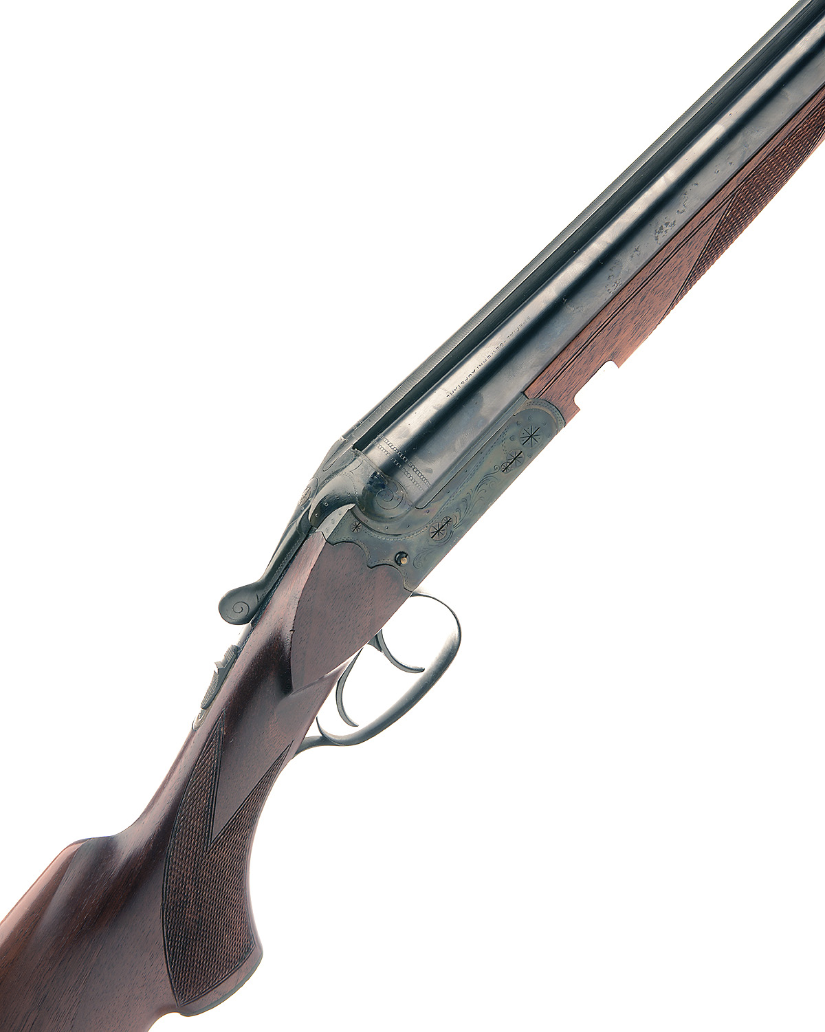 A LIGHTLY USED 12-BORE BOXLOCK NON-EJECTOR, serial no. 638313, 28in. nitro barrels with raised file cut rib, 2 3/4in. chambers, bored approx. 1/4 and full choke, bolstered scroll-back treble-grip action with side clips, manual safety, side-mounted gold pin cocking-indicators, partially engraved with border and scroll, retaining virtually full original colour-hardening and finish, 14 5/8in. pistolgrip stock with pistolgrip-cap and buttplate, sling swivels, weight 6lb. 8oz.