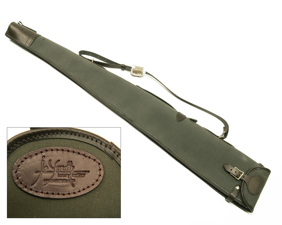 A GREEN CANVAS AND LEATHER FLEECE-LINED SINGLE GUNSLIP,