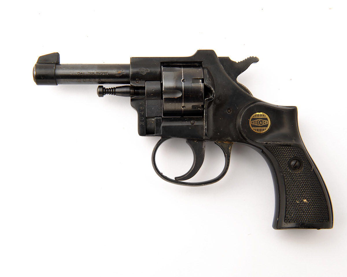 A .22 (L/R) POCKET-REVOLVER SIGNED GECADO, serial no. 20461, with blued and sighted 3in. barrel, six-shot cylinder, alloy frame and black plastic chequered grips
