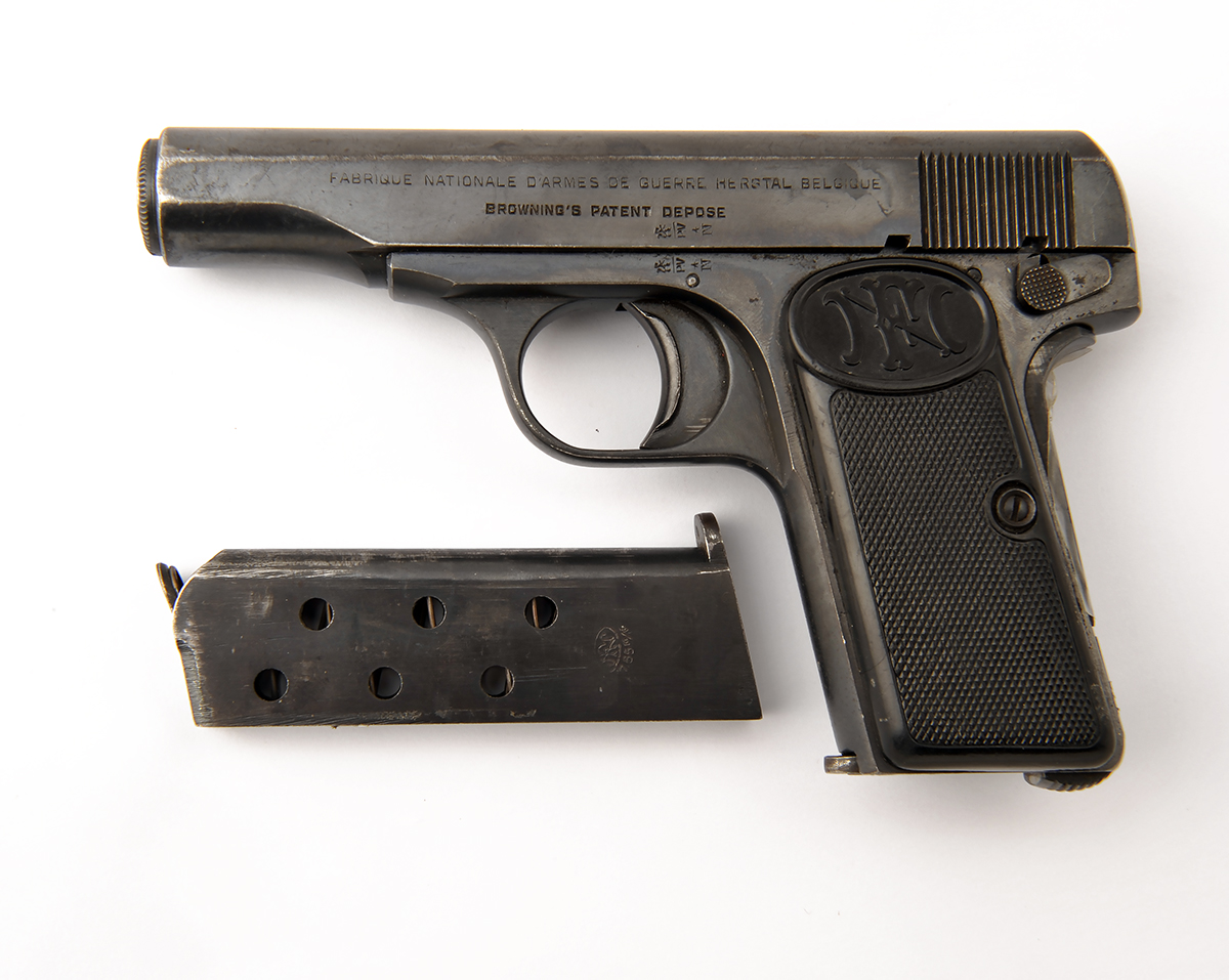 A .32 (ACP) SEMI-AUTOMATIC PISTOL SIGNED FN, MODEL BROWNING 1910, serial no. 406263,