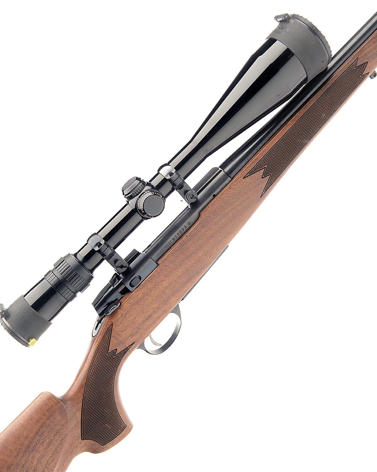 LEFT-HANDED SAKO .243 'M591' BOLT-MAGAZINE SPORTING RIFLE, serial no. 878093, 22in. unsighted nitro barrel, fitted with a Bausch & Lomb Elite 3000 telescopic sight, manual safety, hinged floorplate, 14 1/8in. well-figured pistolgrip stock (including stock extension and recoil pad), sling eyes
