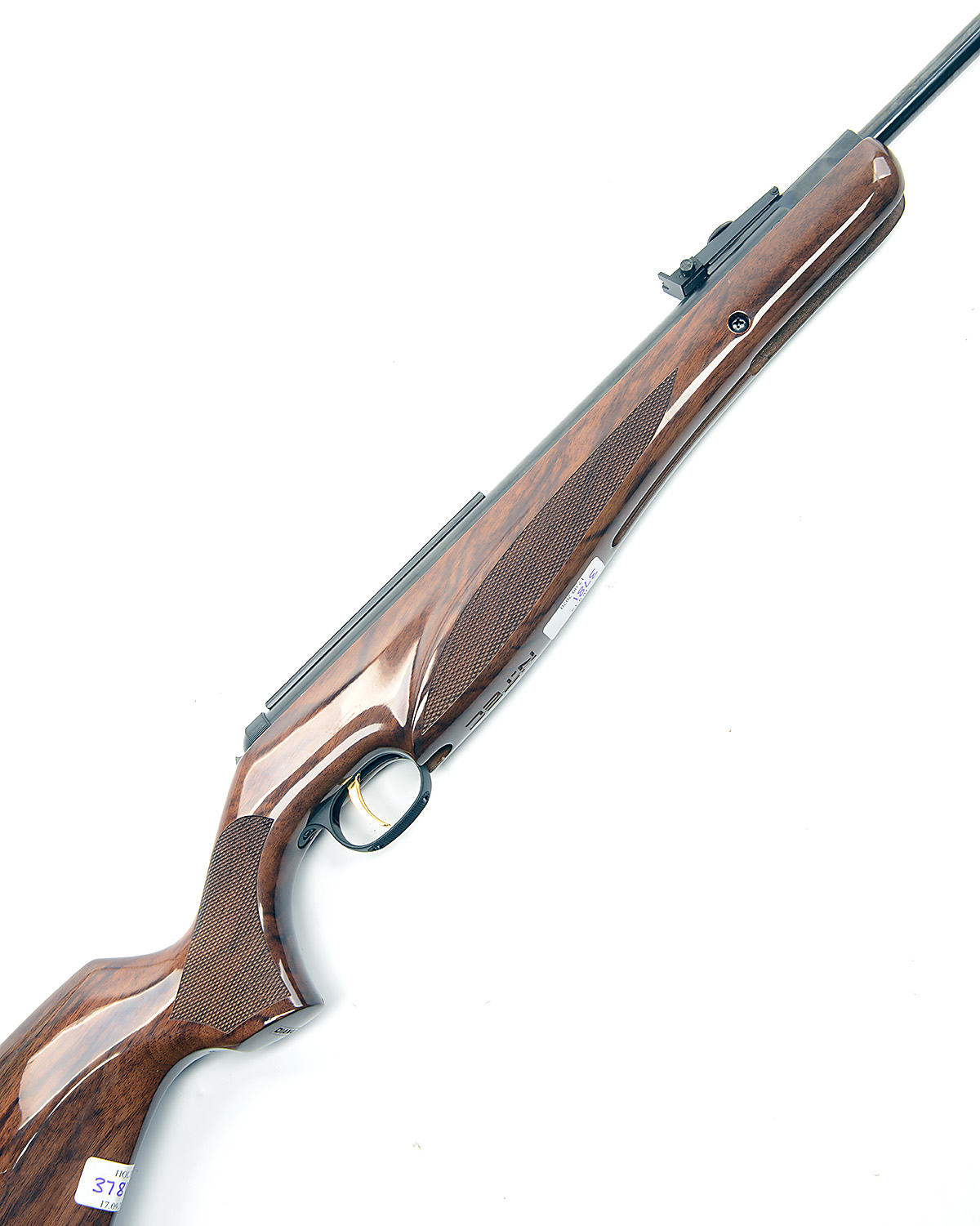A SCARCE .177 BREAK-BARREL AIR-RIFLE SIGNED DIANA, MODEL '340 N.TEC '135th ANNIVERSARY', serial no. 20028832, limited edition produced in 2015, with blued and sighted 19 1/2in. barrel, blued air-chamber with anniversary etching and applied telescopic sight rail and highly figured walnut half-stock, some storage marks to wood otherwise collector's condition