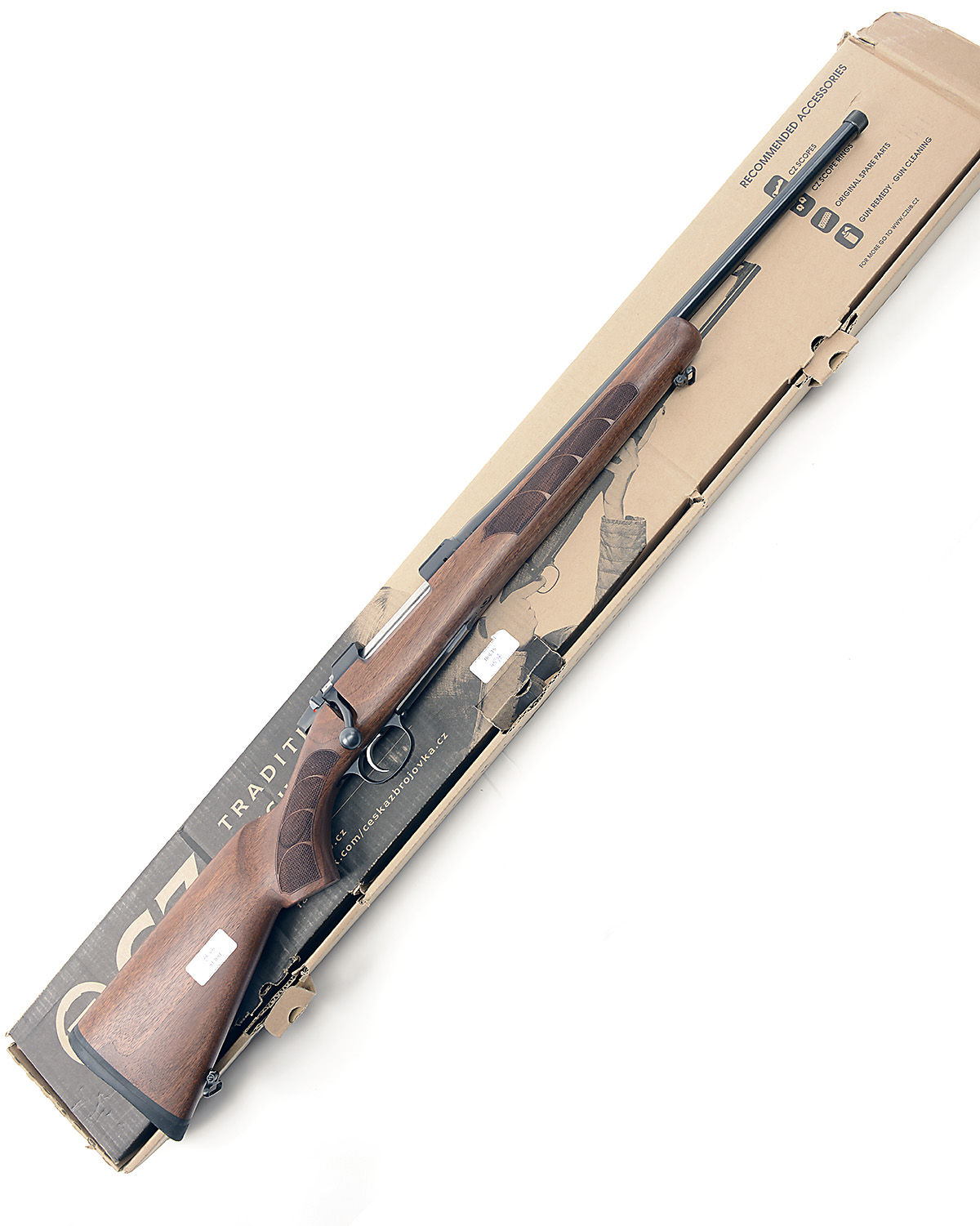 CZ .243 WIN. 'MODEL .243 WIN. 'MODEL CZ 557' BOLT-MAGAZINE SPORTING RIFLE, serial no. B506533, 20 3/8in. nitro barrel, threaded for sound moderator, manual safety, hinged floorplate, 14in. pistolgrip walnut stock, sling swivels, in its makers carton