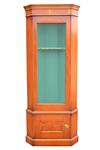 A 21st CENTURY ANTIQUES MODEL 304 TOUGHENED GLASS FRONT WALNUT CORNER GUN CABINET,