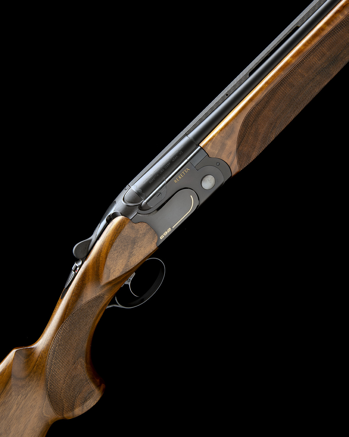 30in. nitro barrels with ventilated mid-rib and 10mm carbon fibre ventilated matt top-rib, 3in. chambers, multichokes (with spares), hold-open toplever, manual safety with integral barrel selector switch, adjustable single trigger, blacked finish with stippled fence, gold-inlaid with the makers name and model designation, 14 1/2in. pistolgrip stock including 5/8in. rubber recoil pad, weight 7lb. 15oz., in its makers universal case