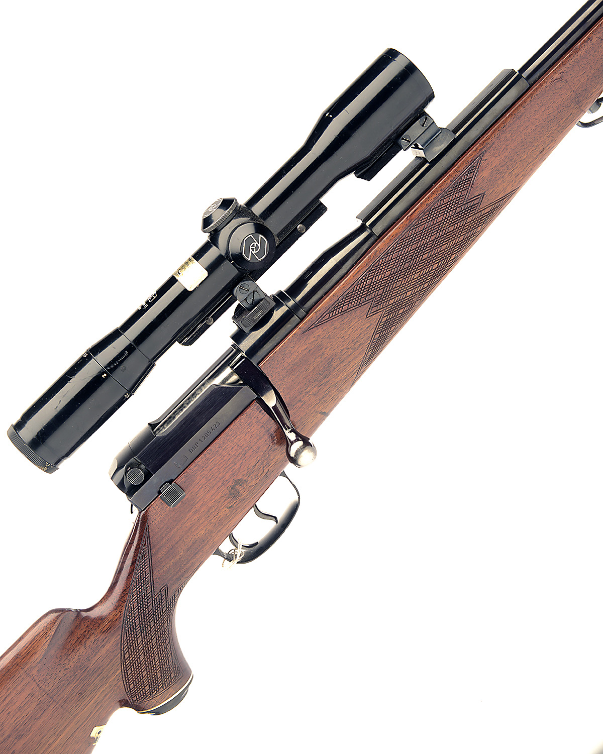 MAUSER 8x68S 'MODEL 66' BOLT-MAGAZINE SPORTING RIFLE, serial no. G29759, Dated 1972. 25 1/2in. nitro barrel, ramp-mounted blade fore-sight, rear-sight missing, fitted with a Carl Zeiss 1,5-6x telescopic sight, with quick release claw mounts, manual safety, set triggers, 13 3/4in. well-figured pistolgrip stock (including ventilated recoil pad) with cheekpiece, sling swivels