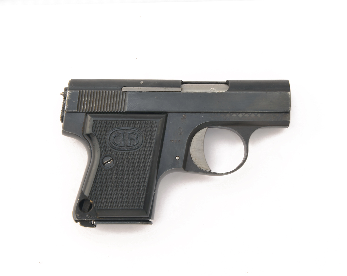 A .25 (ACP) SEMI-AUTOMATIC POCKET-PISTOL SIGNED 'BERNARDELLI', serial no. 58284 dated 1953, with 2in. barrel with sighting grove marked 'BERNADELLI-GARDONE V. T. ITALIA-CAL. 6.35 BRE. / MADE IN ITALY ', blued slide and frame chequered black plastic grips marked 'JB'