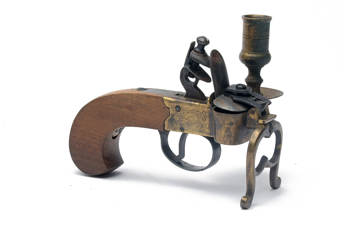 A CANDLE HOLDER IN THE FORM OF A TINDER LIGHT,