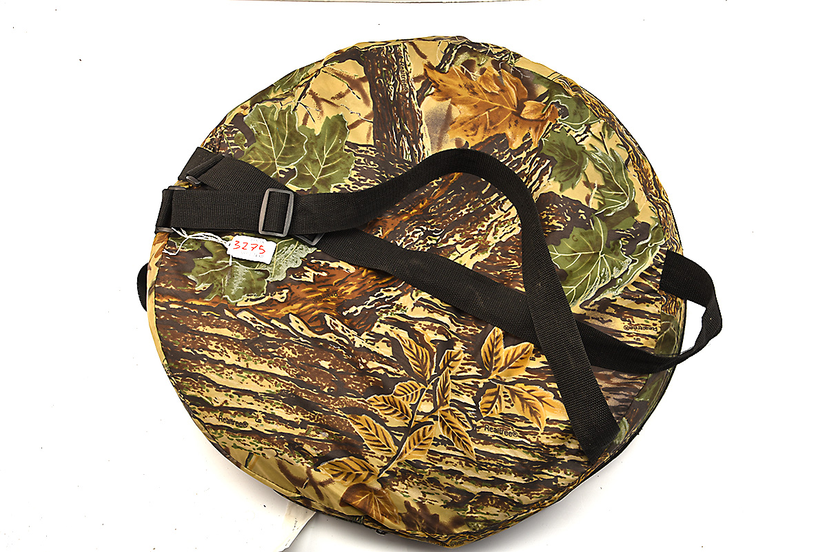 A JAC-SHELTER REAL TREE CAMO POP UP HIDE IN RUCKSACK CARRY PACK