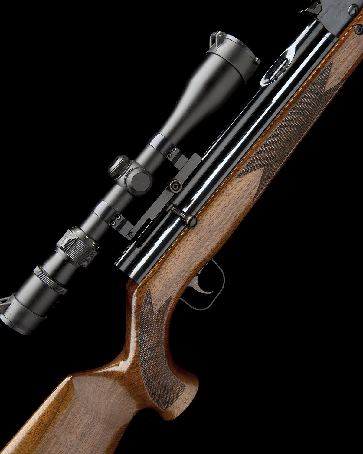 Provenance: The Sterling HR83 was introduced in 1983 as an upmarket version of the Sterling HR81, which had experienced successful sales since its introduction in 1981. Apart from the addition of a hand selected walnut stock, the other major change with the HR83 was the introduction of a new two-stage trigger. Unfortunately this trigger proved extremely problematic; many broke resulting in the factory having to almost hand make every one. Indeed, it was commented on at the time that every trigger that left the factory was different in some way. This slow and laborious process resulted in only around 100 rifles being produced; indeed, so few were made that Sterling never even tooled an 'HR83' stamp for the model designation.