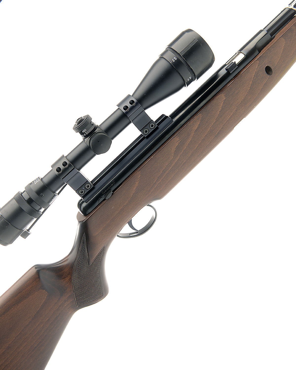 A SCARCE .25 UNDER-LEVER AIR-RIFLE SIGNED BSA, MODEL 'SUPERSTAR', serial no. APH1983, with 22 1/2in. barrel including sound moderator (sights absent), rotating breech, blued air-chamber with Maxi-Grip telescopic sight rail and beech half-stock, appearing unused complete with its manufacturer's inspection card and a Bushmaster 4-12x40 telescopic sight