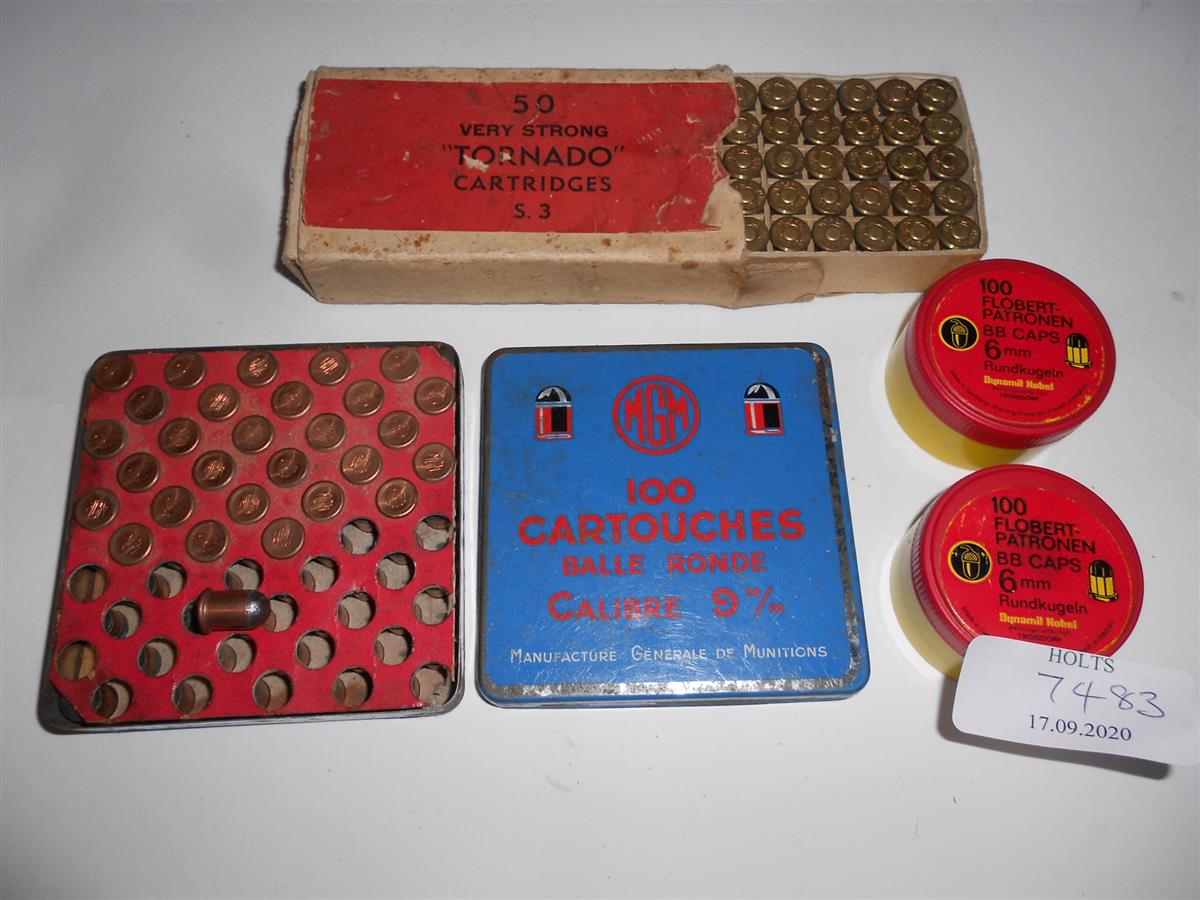APPROXIMATELY 200 6mm BB FLOBERT CAPS, 79 9mm RIMFIRE GALLERY ROUNDS, 50 TORNADO STRONG BLANK TRAINING CARTRIDGES, comprising of: