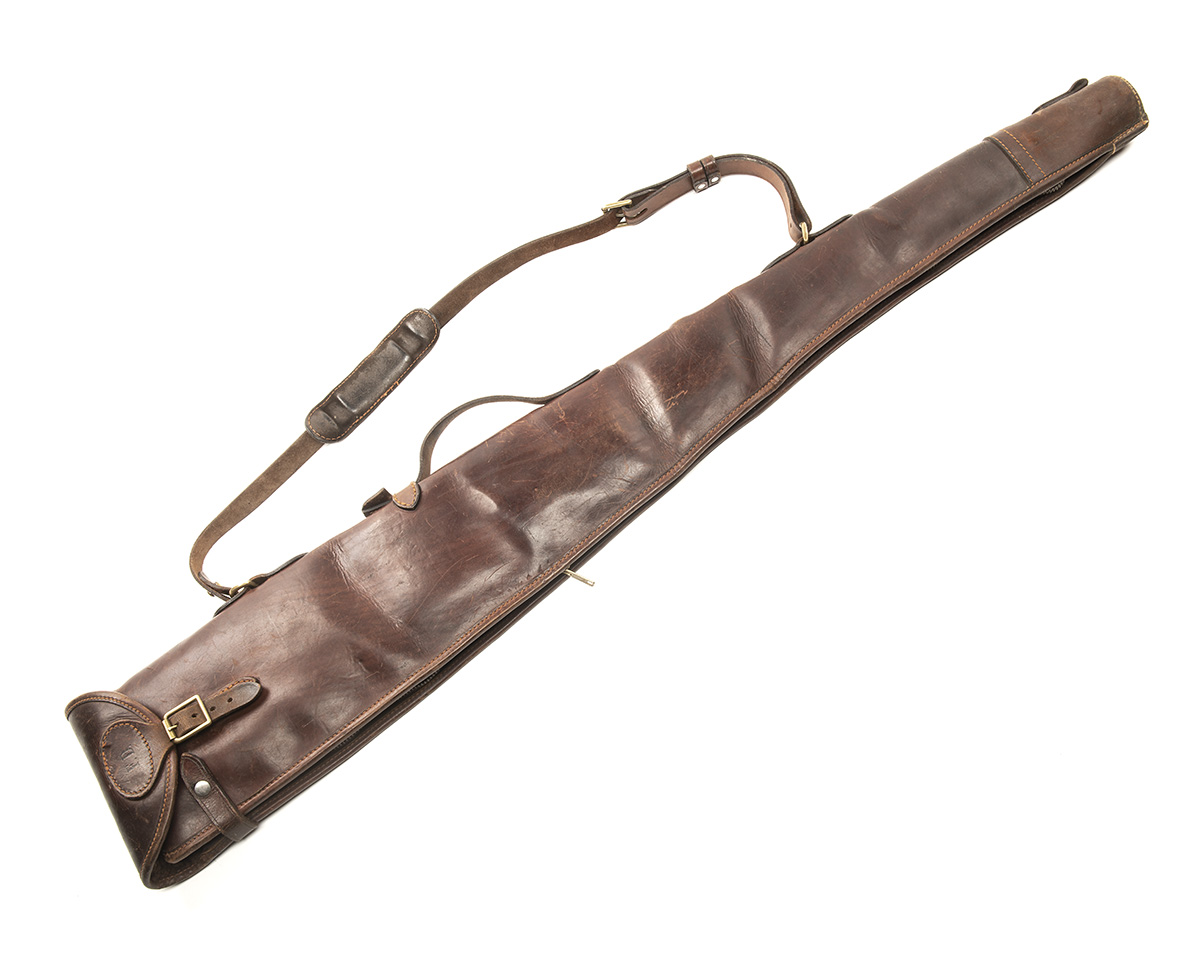 A LEATHER SHEEPSKIN-LINED SINGLE GUNSLIP,